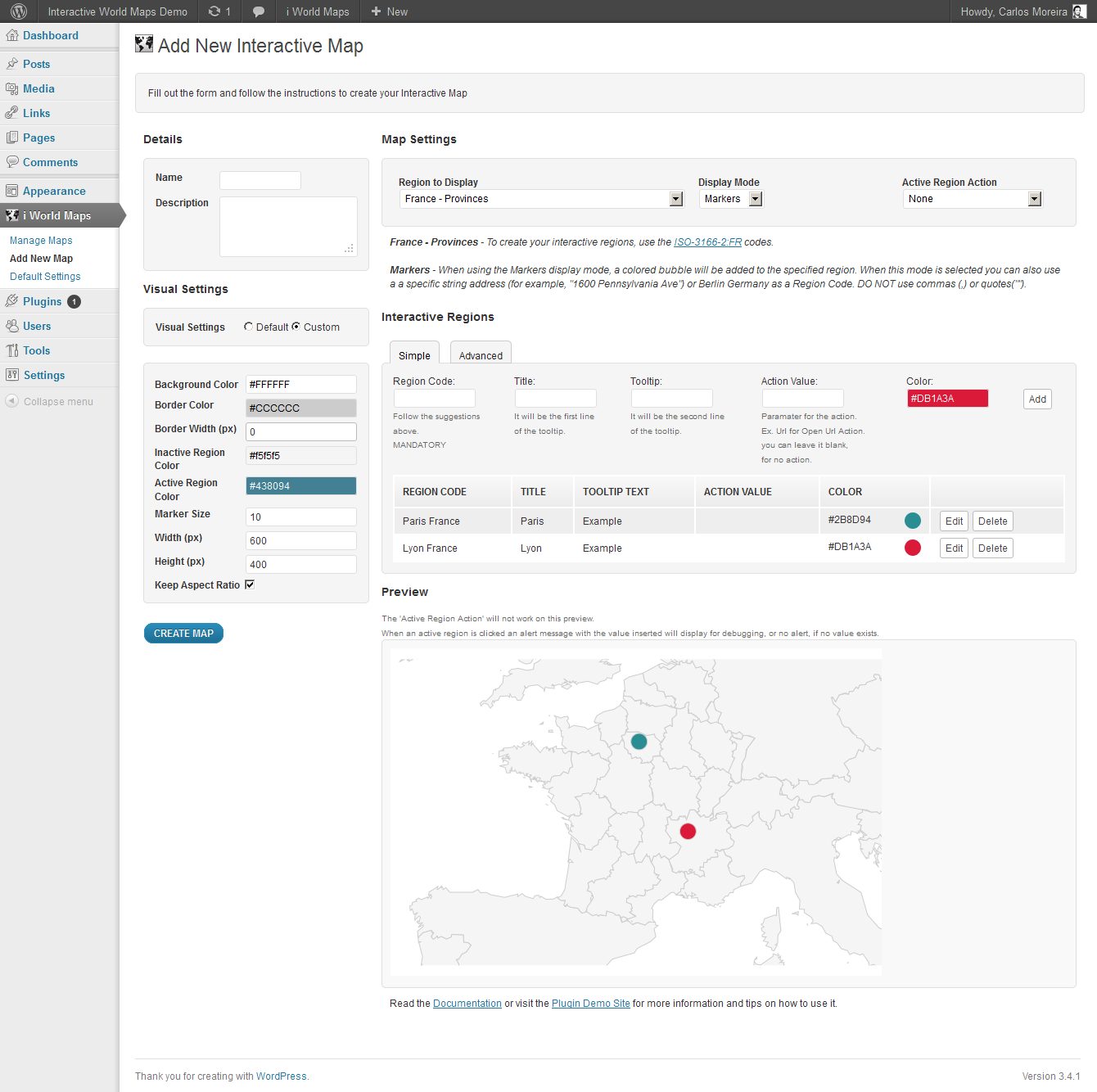 Destaque-se com o plugin mais completo e poderoso de mapas interativos para WordPress! Com o Interactive World Maps, você cria quantos mapas quiser, com marcadores coloridos, regiões clicáveis, efeitos interativos e muito mais — tudo sem precisar programar! 😎
